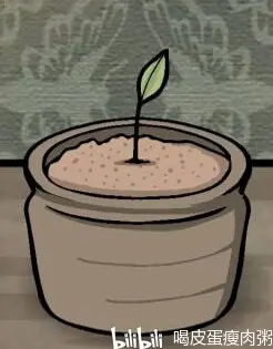 5、去镜子前,把“过去”的脑子装上,一下就穿越回过去了。在沙发上能看到乌鸦先生,跟他聊聊,他想要杯咖啡,然后会给你个杯子。检查地上的袋子,里面有盘磁带和一颗种子。把种子种到地上的花盆里,用杯子去书架第一层接杯水,浇上去,咖啡豆就长出来了。