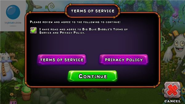 2、进入游戏后,请先阅读并勾选同意相关的服务条款与隐私政策,这是开始游戏的前提。