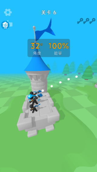 2、进入关卡后,你需要用手指在屏幕上滑动,以此来调整弓箭发射的角度和力道,目标是精准命中所有敌人,顺利通关。