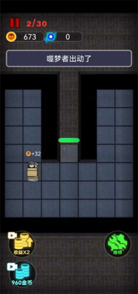 4、如果发现有噬梦者正朝着你的房间走来,最明智的做法是立刻投入金币加固你的房门等级。要是手头上的金币还比较宽裕,把床的等级也一并提升,可以加快金币的获取速度。
