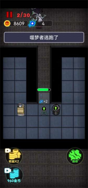当金币积累到一定程度后,你就可以开始在房间的空地上布设并升级各种防御塔了。不断提升它们的攻击力和攻击速度,是有效抵挡猛鬼一波波攻击的关键。