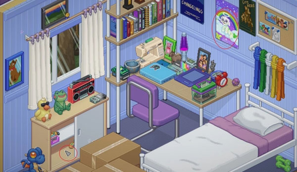 2012年的关卡就轻松多了,只有两个成就。第一个依然是通关就送。第二个成就的解锁方法是,在卧室的柜子里找到一卷海报,把它随便贴在墙上的任何一个位置,成就就会立刻弹出。