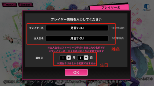 2、接着是给自己起个名,再填个生日。注意了,点完【ok】之后还得再确认一次,别手快点错了。