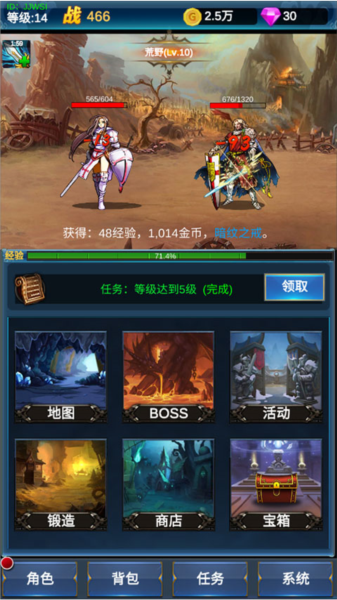 2、内容不只是挂机那么单调。你可以去爬塔搞无尽挑战,去酒馆接任务赚外快,还能组队去森林里推倒大BOSS,玩法挺多样的。