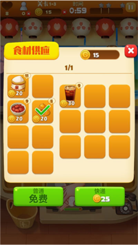 程序设定挺清晰的,玩起来不乱。食材可以升级,升级条件也合理,氪金点不多,这点好评。