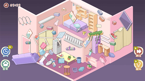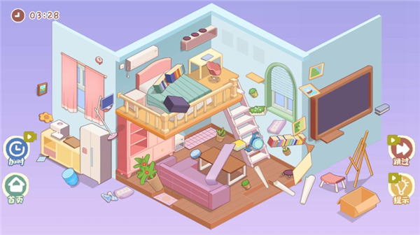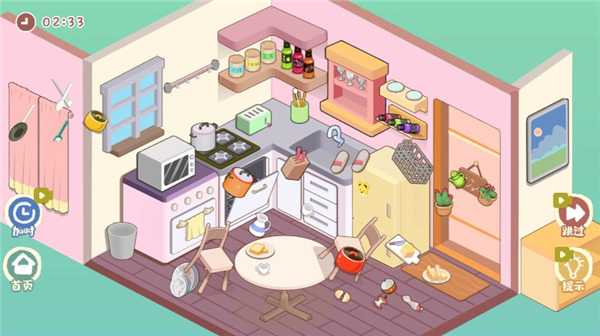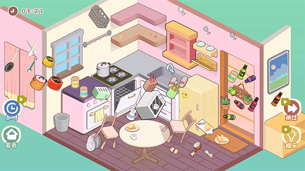 3、这游戏模拟收纳的体验感做得不错,画面虽然简约,但乐趣就在于此。看着乱成一锅粥的厨房在自己手里变得井井有条,那成就感还是挺强的。