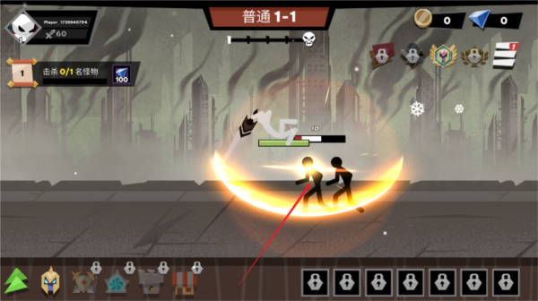 5、技能养成体系也挺全面的。你可以给角色升级武器和盔甲,还能解锁和升级一大堆主动被动技能,全方位提升角色的战斗力。看着自己的火柴人从一个白板慢慢成长为战神,还是挺有成就感的。