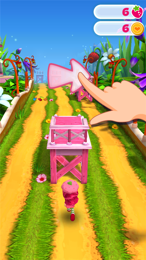 这游戏的3D画风,怎么说呢,就是那种非常典型的欧美卡通风格,角色形象圆滚滚的,挺呆萌。关卡里铺天盖地的草莓,加上各种清新唯美的场景设计,跑起来的动作也做得挺流畅生动,视觉上还算舒服。音乐也是那种不吵不闹的休闲调调,整体给人的感觉就是放松。不过得吐槽一句,游戏里的少女元素有点过头了,满眼的粉色浆果、七彩蘑菇,还有梦幻场景,偶尔还有大蝴蝶带你飞,对糙汉子玩家来说,这审美冲击力可不小。