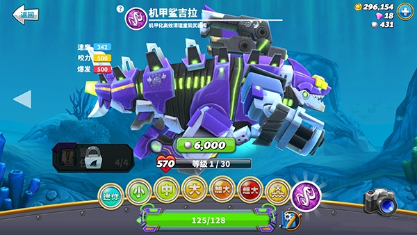 3、解锁之后还不算完,机甲鲨吉拉还有个终极能力。你需要完成它专属的128个任务,才能把这个终极能力给激活。