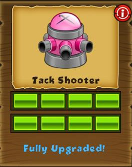 2.图钉塔 (Tack Shooter):这个粉色的墩状炮塔的设计灵感源自游戏内的图钉气球,其主要弱点是攻击范围较小。。升级路线也分两条:左边是纯粹的射速流,点满了就是图钉喷雾机,最后还能变成火圈,视觉效果拉满。右边是射程和形态流,加长射程后变成发射刀盘,终极技能刀锋漩涡是个全屏AOE,清杂兵好用。不废话,直接看图。