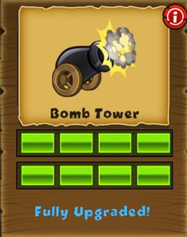 6.炮塔 (Bomb Tower):该单位的设计概念源自游戏中的炸弹气球。。讲真,这东西在4代里还是爹,到了5代感觉被砍了一刀,没那么无脑了,但开局就能炸铁皮气球还是香。只要不是水图,都可以用。左边升级线走的是控制路线,弹片带伤害,最后还能群体眩晕。右边升级线是纯暴力输出,导弹塔点出来之后伤害和范围都上一个档次,终极技能是飞艇刺客,专门秒杀大家伙。