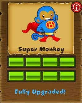 9.超人猴子 (Super monkey):虽然建造费用很高,但其性能完全对得起成本。。前期是单体,后期升级了就是毁天灭地的存在。左边升级线是质变路线,从激光眼到等离子炮,最后变成太阳神。你要是够有钱,还能献祭周围的塔搞个猴子神殿出来,那场面,啧啧。右边升级线是加范围和变机器人,最终形态的技能可以秒杀一大片,不过对飞艇无效。