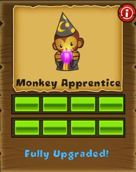 10.魔法猴子 (monkey apprentice):拥有多样的攻击手段,且初始攻击便附带穿透效果,不过无法侦测到迷彩目标。。左边升级线是风系魔法,从闪电链到龙卷风,能把气球往回吹,打乱阵型。右边升级线是火系魔法,扔火球带溅射,还能给气球上点燃状态,最终技能召唤一只火凤凰满场飞,持续输出能力很强。