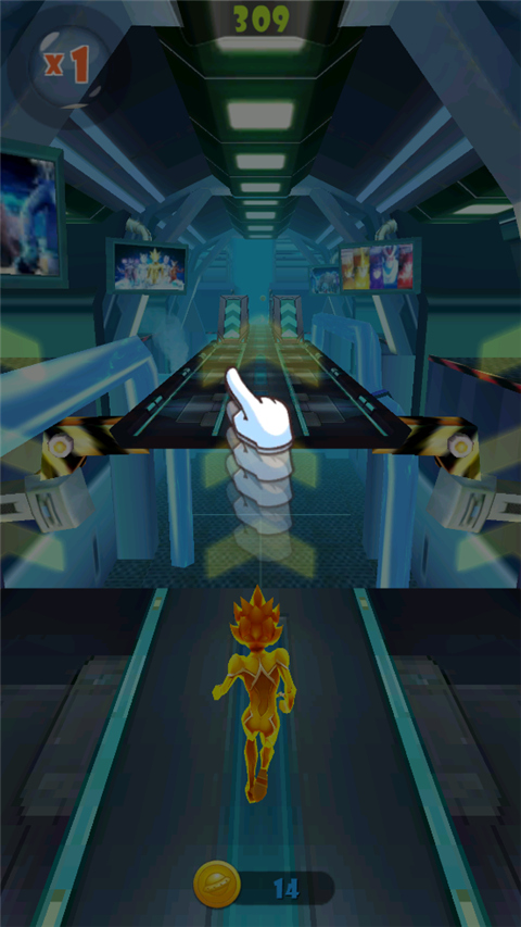 6、有时候赛道会分叉到两边,直接左右滑动,让你的人物跑到有路的那边去。