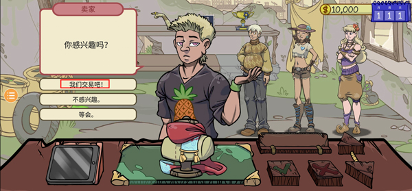 4、剧情过完,第一个客人就上门了。别急,先点“让我看看”是啥货。
