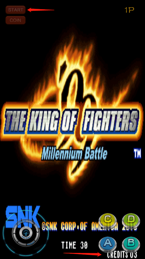 3、看到右下角的credits那里蹦出数字了没?这就说明投币成功了。接着再点左上角的START,正式开干。
