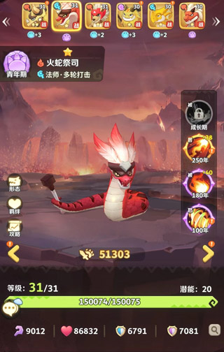 当前版本中,由熔岩甲龙、炽火醉龙、熔山甲、霸道龙人、舞火凤及火蛇祭司组成的队伍,综合实力表现最为出色。这套阵容主打的是火系燃烧伤害,整体输出能力爆表。就算对面有治疗宠物,也扛不住这套的伤害,基本一个回合下来就是非死即残的局面。