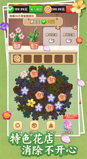 1、游戏里能拿来合成的花种类还真不少, 玩起来就是不停地“合合合”, 关卡过了之后给的那些奖励也算中规中矩吧。