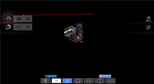 4、左上角有个手掌图标,这是万能互动键,捡东西、开门、跟人说话全靠它。