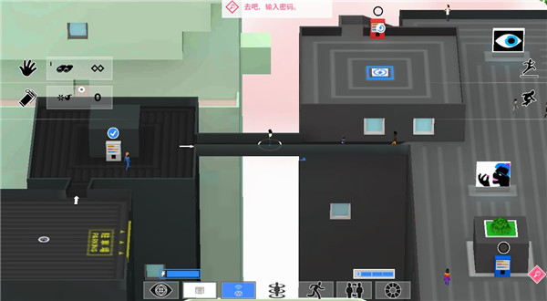 5、这排小按钮,从左到右分别是跑步/走路切换、跳、还有蹲下。跑酷和躲子弹就指望它们了。