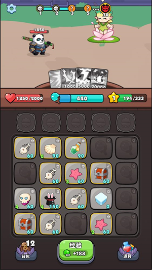 4、干掉小怪兽之后,就有机会拿新棋子。这些棋子可不是摆设,不同的棋子凑一起能触发各种连锁反应,怎么搭配就看你自己研究了。