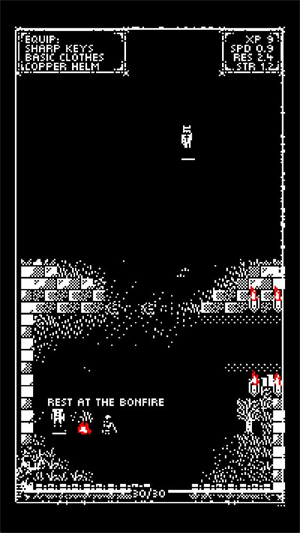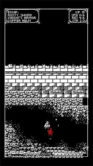 采用经典的黑白像素画风,视觉风格独特;强调以战养战,通过击杀小怪获取关键道具,为高难度挑战提供持续的正向支撑。