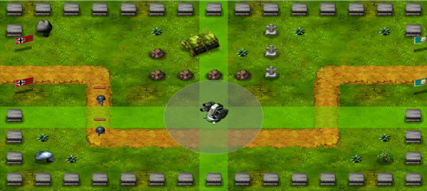 5、进了战场以后,看下面那个炮塔列表,选中一个直接拖到地图两边的空地上就能放下来了。