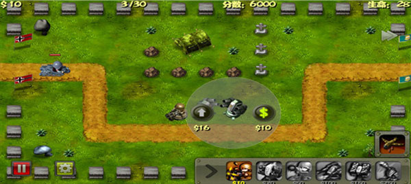 4、目标就是干翻一波又一波的敌人。你能用的炮塔有六种,都能升级,靠它们守住15关的阵地;