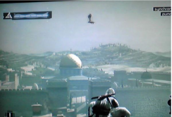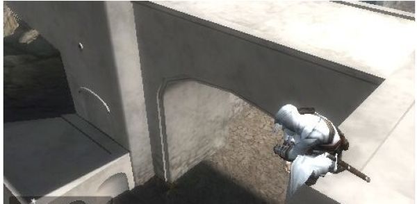 6、搞定铁匠之后,就跟着地图指示一路狂奔。跑到城墙边上,阿泰尔又会使出他的祖传艺能——信仰之跃!跳下去之后,这关就算过了。