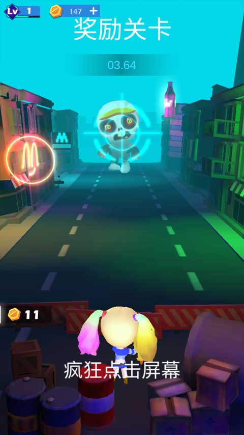 2、核心玩法就是按住屏幕不放,然后拖动你的准星去锁定僵尸,枪会自动开火,你要做的就是瞄准。