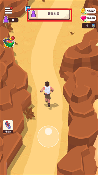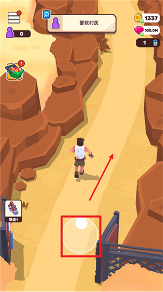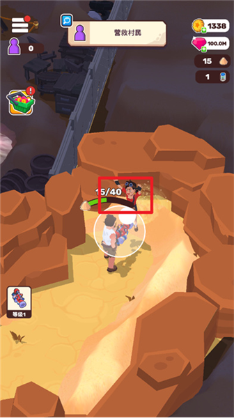 3、顺利跑到任务点,看到那个被困住的村民没?这时候就该掏出你的神器——吸尘器了。对,你没看错,就是用吸尘器来救人,直接把他吸出来就完事了。