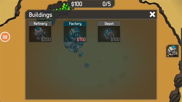 3、你看左下角那个菜单,点开就是造东西的列表。造个工厂要花50块钱,直接点那个“$50”就完事了。