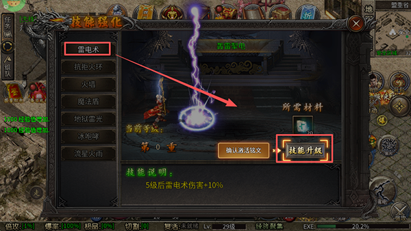 3、然后跟着新手引导走,它会让你点那个雷电术去强化技能,点完就开始自动打怪了。