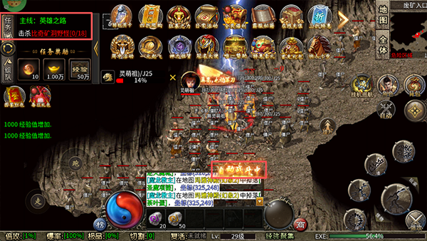 4、接着你点开任务界面,就能看到你那角色已经在地图里自己砍怪、自己捡元宝了,双手彻底解放。看到截图里这个界面没,就是挂机状态了。