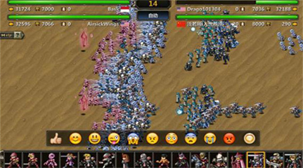 1、对战的玩法挺有乐子,你可以随便挑不同类型的兵种上场干架。打赢了就能捞到一笔金币,然后用这些钱再去招募更多更强的兵,滚雪球嘛。