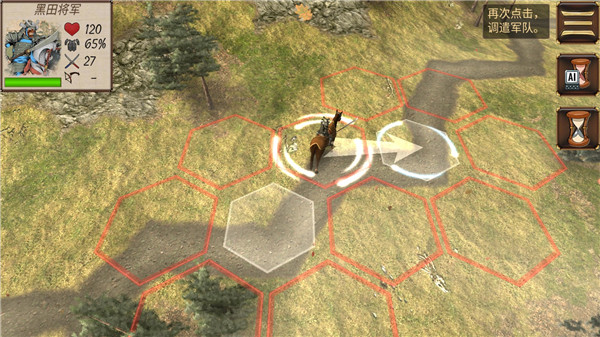 5、战斗是战棋模式,点一下自己的人,再点个地方就能移动,很简单。
