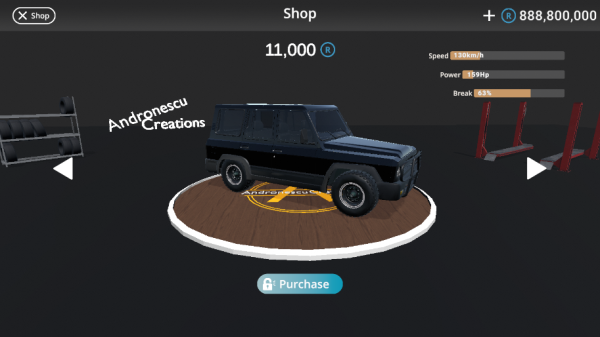4、看上哪辆了,直接点“purchase”就买了。对了,从咱们这下的这个版本,上来就给一堆钱,根本花不完。白嫖党直接冲就完事了。