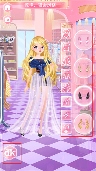 6、在右边衣柜里翻翻找找,搭配好了就点左下角的“OK”确认。