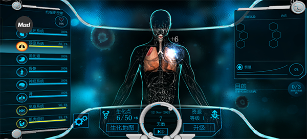 生化点数:主要靠感染人群、触发特定症状来获得,这是升级病毒能力的主要货币。