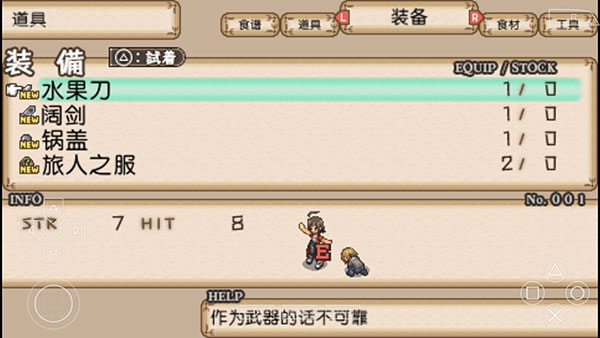 3、切换到装备界面,可以浏览已有的装备属性,也能给你的角色穿上或者更换装备。