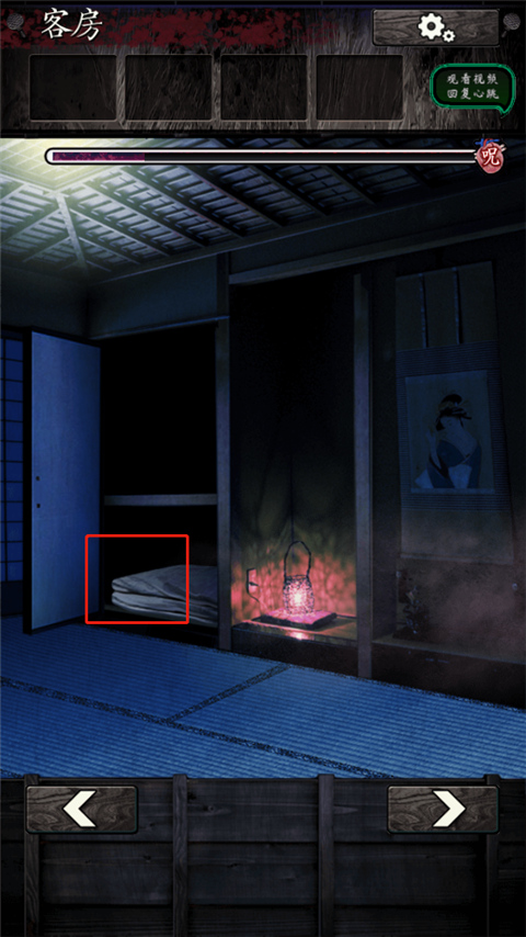 12、剧情过后直接回自己的卧室,再进行一段对话,这一章就结束了。这章有个地方要注意,就是晚饭后你会发现拉门打不开了。这时候要点击房间壁橱上的提灯,然后爬到天花板上去偷听旅馆老板的对话,他们想在你的饭里下药把你干掉。