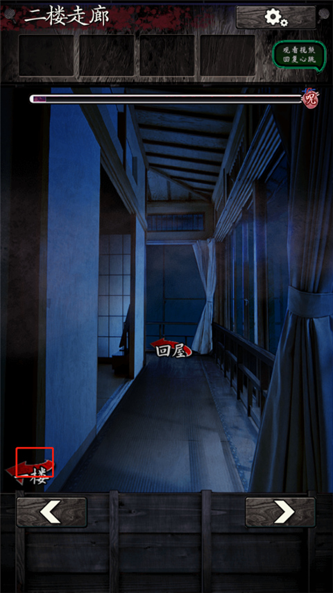 8、再去二楼看看,有你自己的房间(里面分三个场景)、二楼楼梯间、莲华之间、椿之间和厕所。记得点一下二楼楼梯间的窗户。